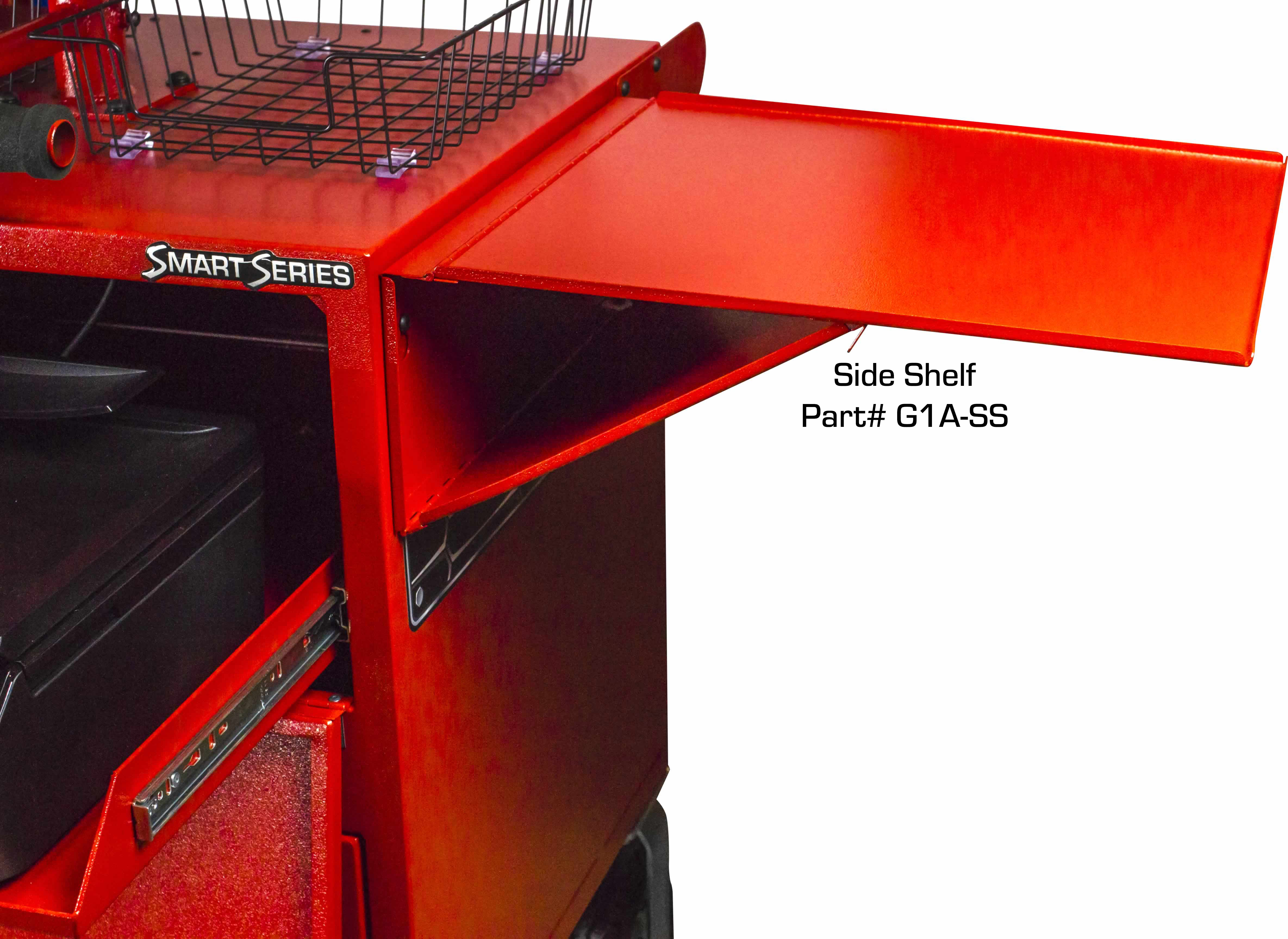 - Accessories: The G1 Side Shelf is a folding desk that attaches to the side of the cart. This shelf provides a greater workspace area on the cart to allow for a larger “desk on wheels.” The Accessory Kit includes everything needed to have a mobile desk – wire baskets to store paperwork, a calculator, stapler, cup holder, Velcro tabs, and supply baskets.