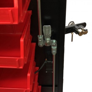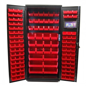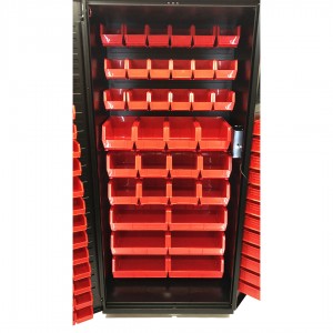 Please Note: Red hanging storage bins are NOT included. This inventory cabinet is designed to allow you to customize the interior to match your needs. Place any hanging bin inside to fit your job specifications. Hanging bins can be found at most industrial supply companies.