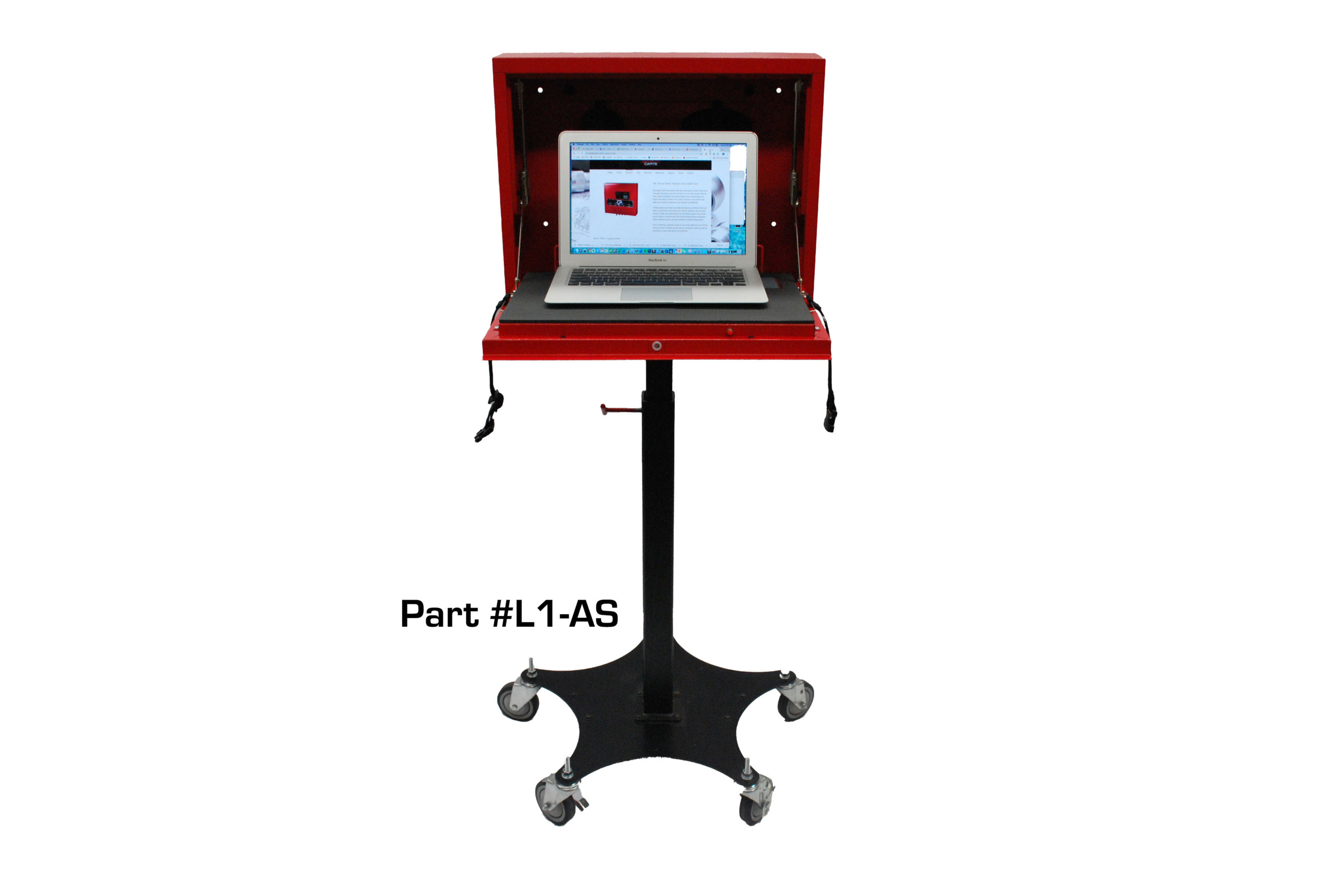 Laptop Locker with Stand (Part #L1-AS): Includes the laptop cabinet with electronic touch pad locking feature along with a stand to mobilize the unit, reducing wasted movement by the technician.