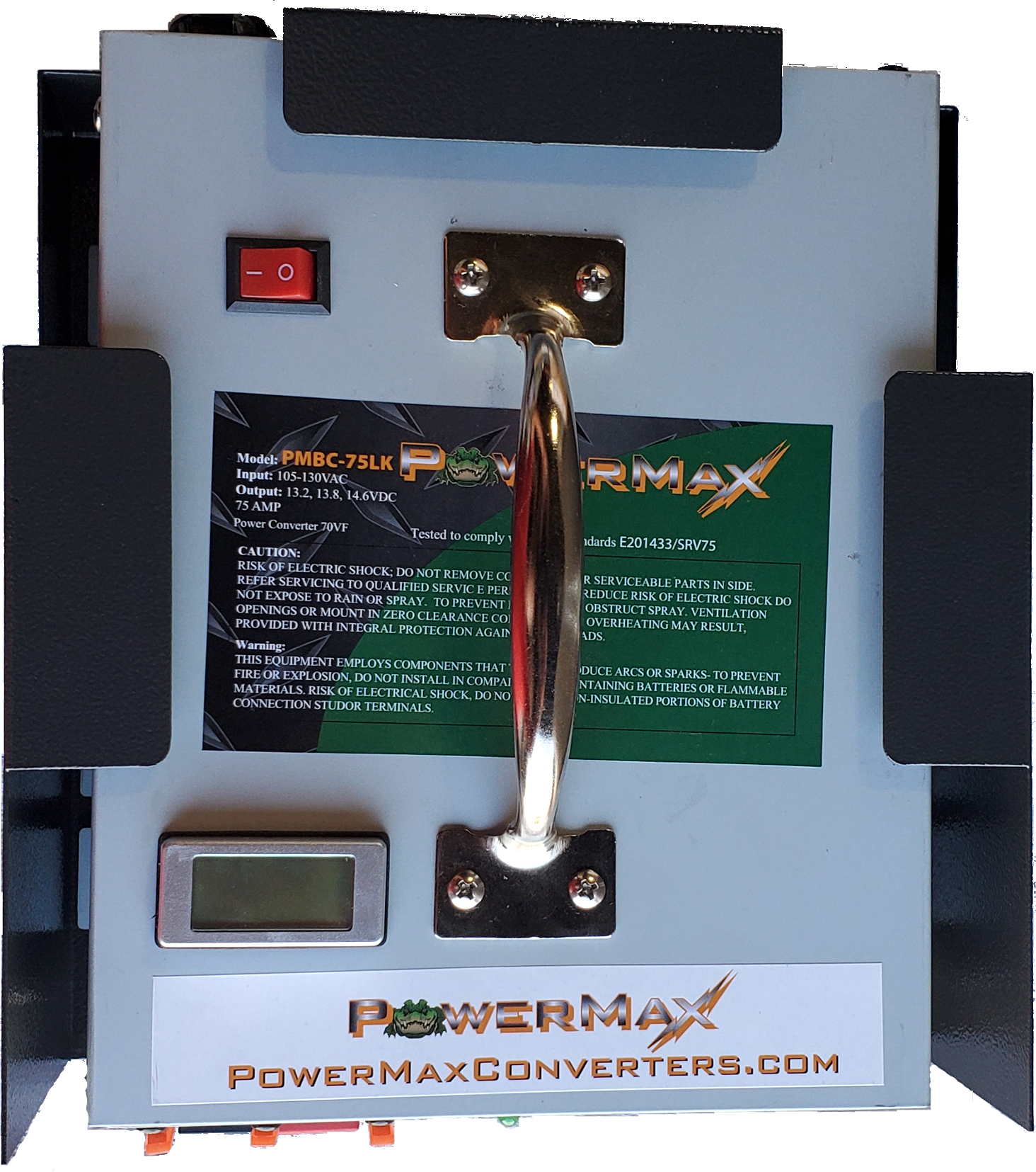 75AMP battery maintainer for mobile carts. Delivers stable voltage for shop tools and electronic devices during use.