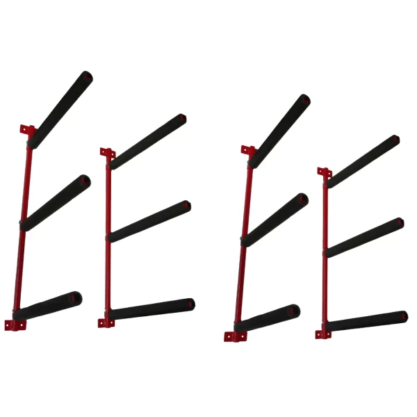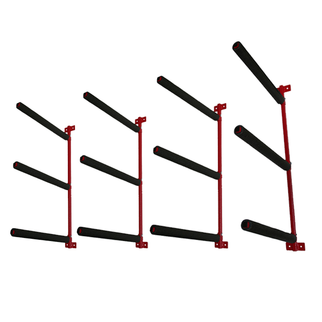 Wall-mounted bumper stand for secure storage and prep. Saves floor space and improves shop organization.