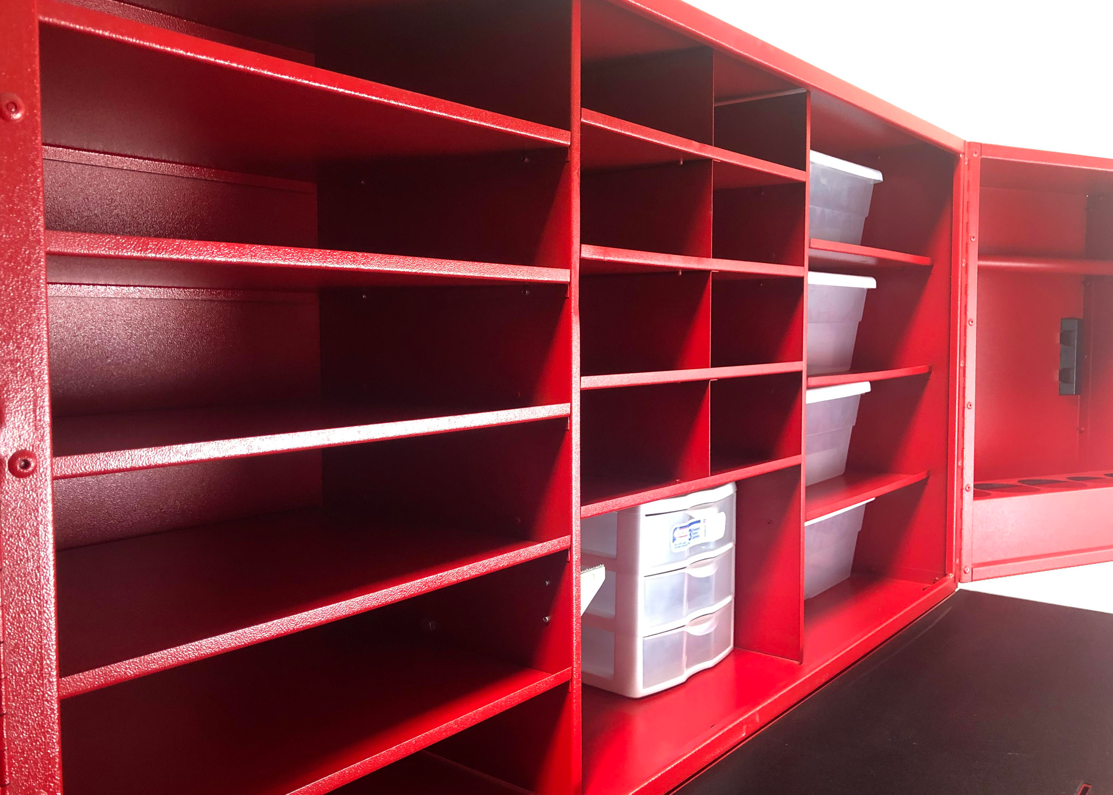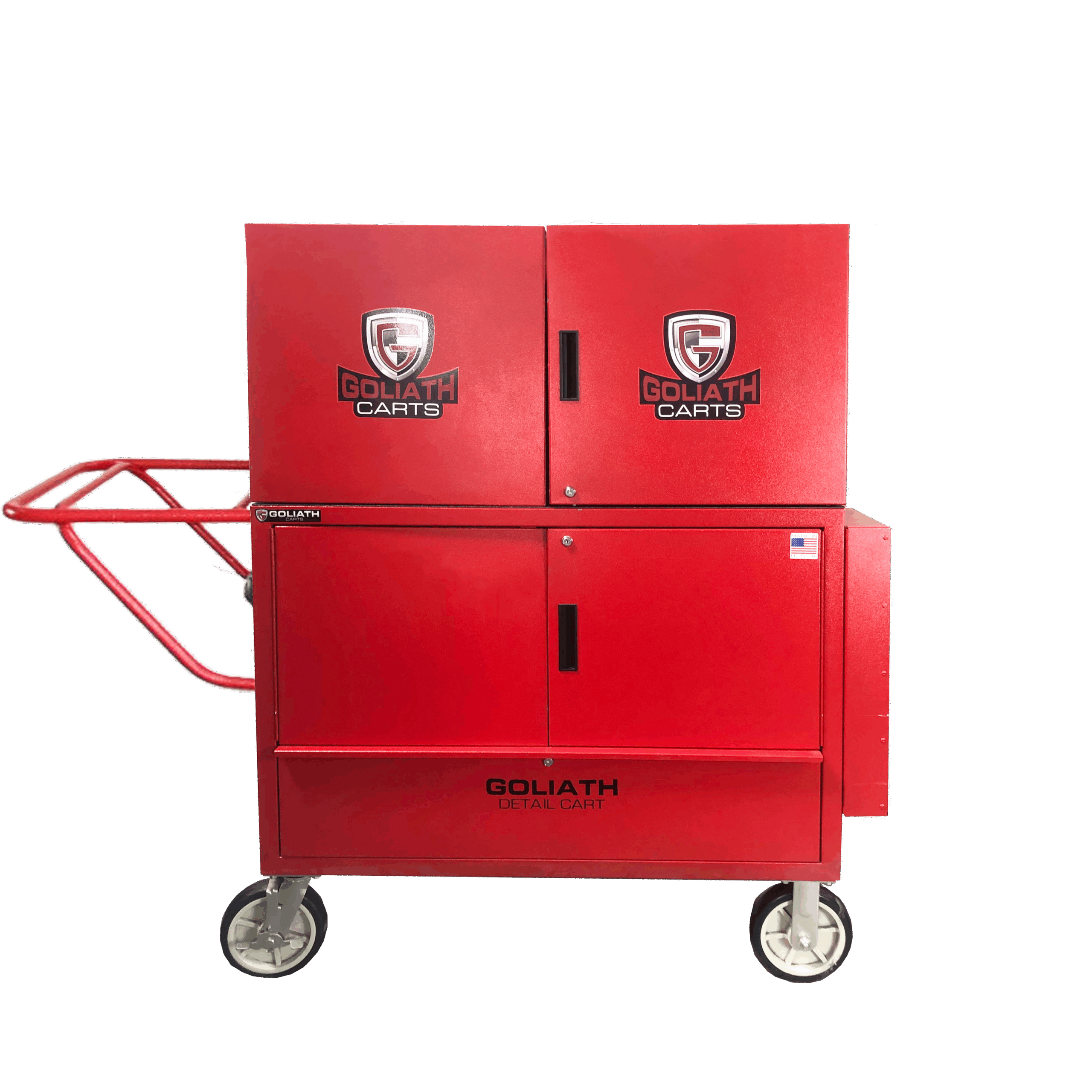Enclosed mobile cart for detailing tools and chemicals. Lockable, organized, and built to reduce contamination.