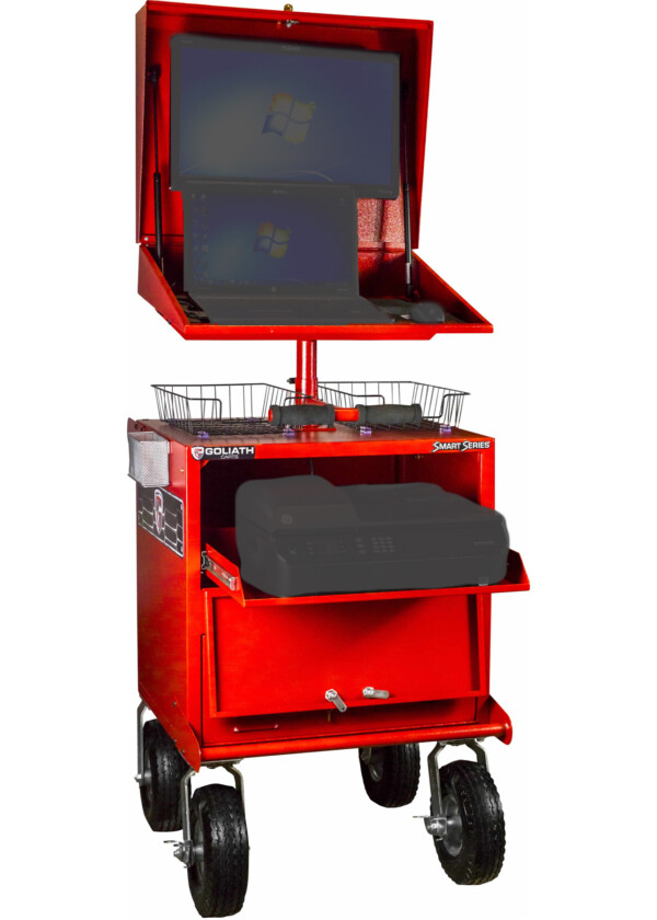 G1 “Go Cart” base model workstation with integrated power, locking storage, and rugged steel construction.