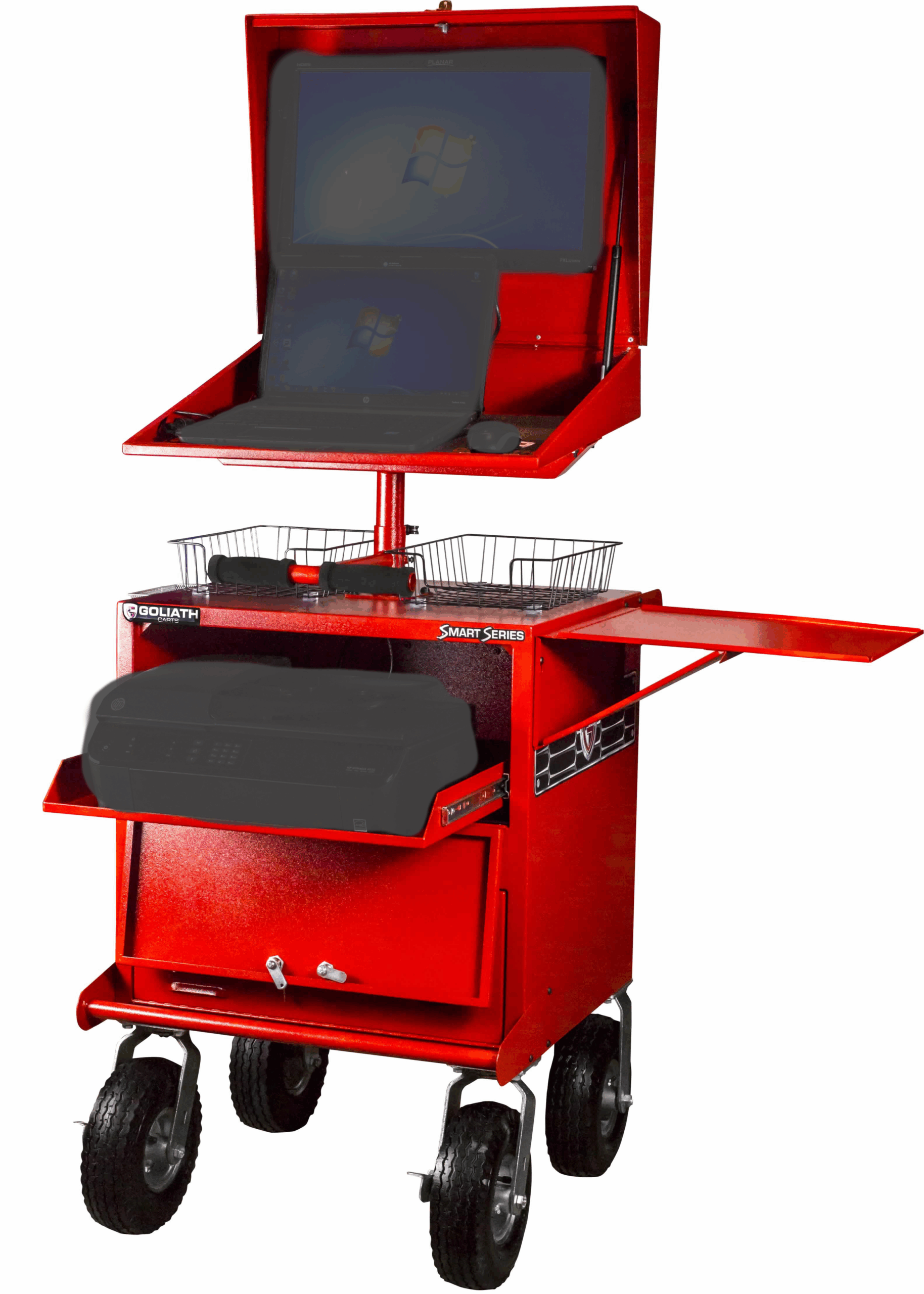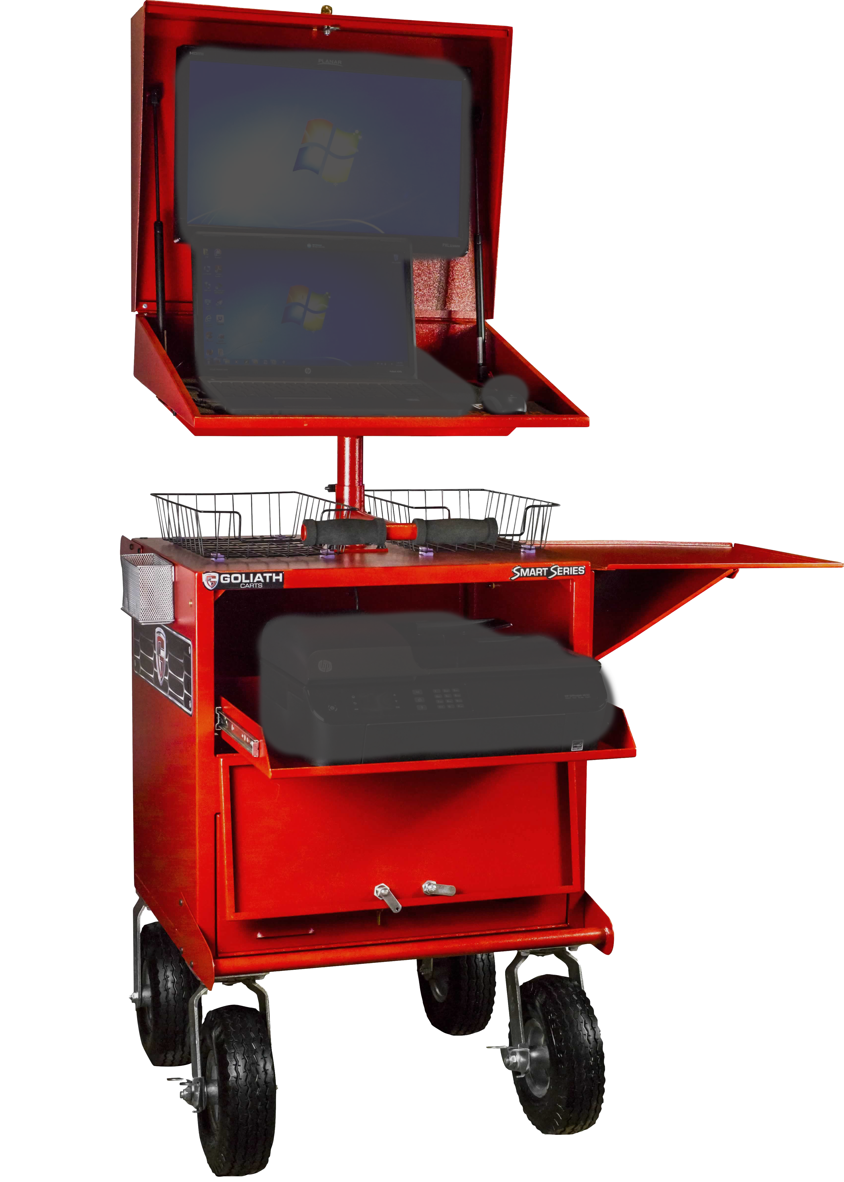 The G1-A by Goliath Carts is the base model of our G1 “Go Cart” mobile workstation, designed to streamline digital estimating, diagnostics, and repair planning. Built on lean principles, it features a rugged powder-coated steel frame, integrated power system, locking storage, and smooth-rolling casters. Fully customizable with available accessories, the G1-A is a proven productivity tool for any collision repair or service department.