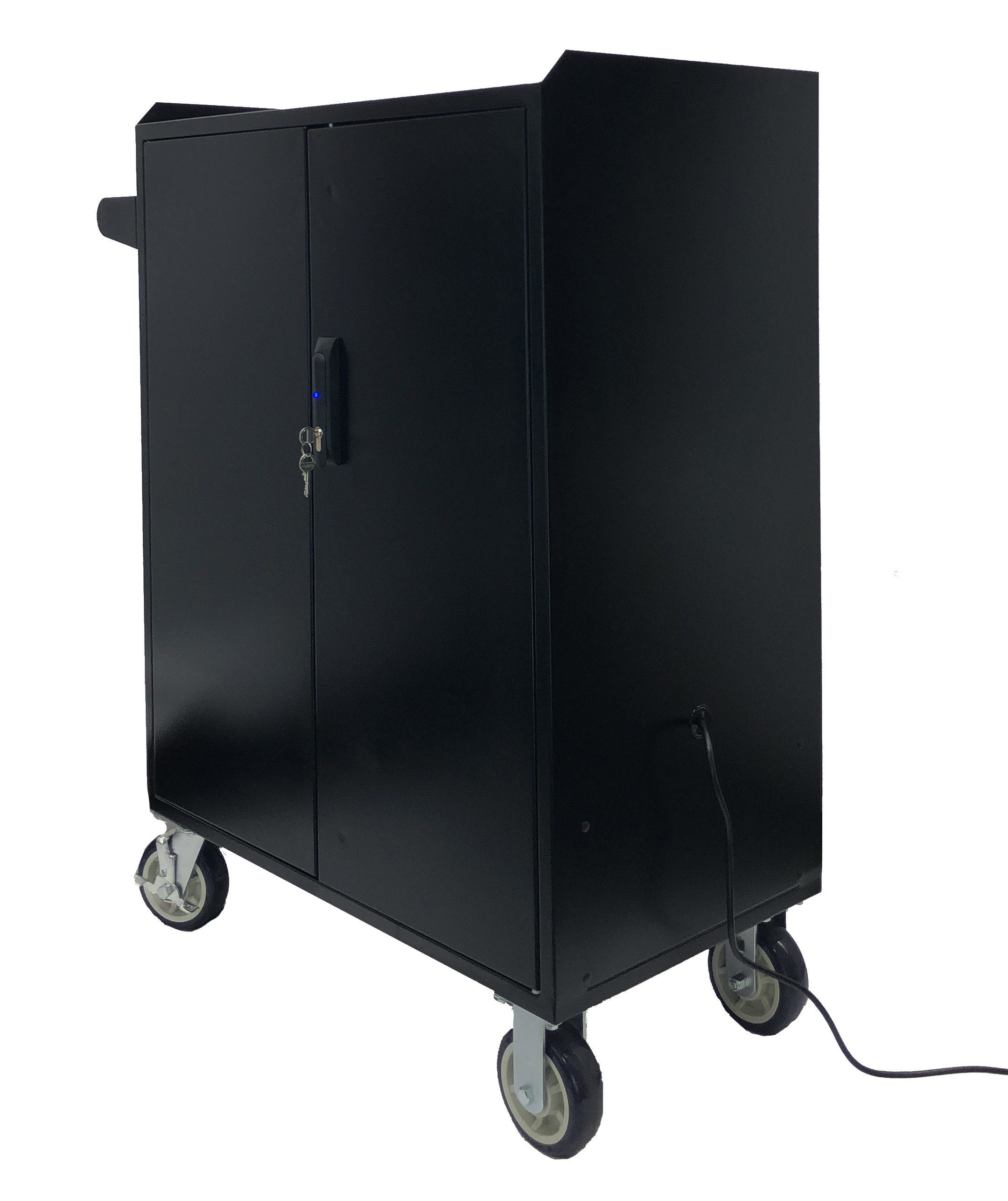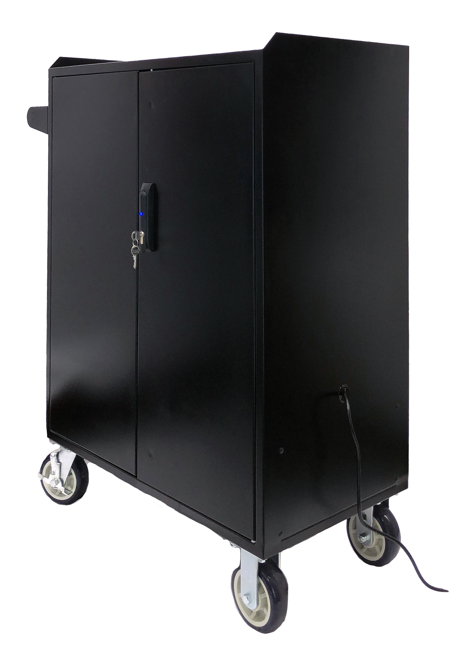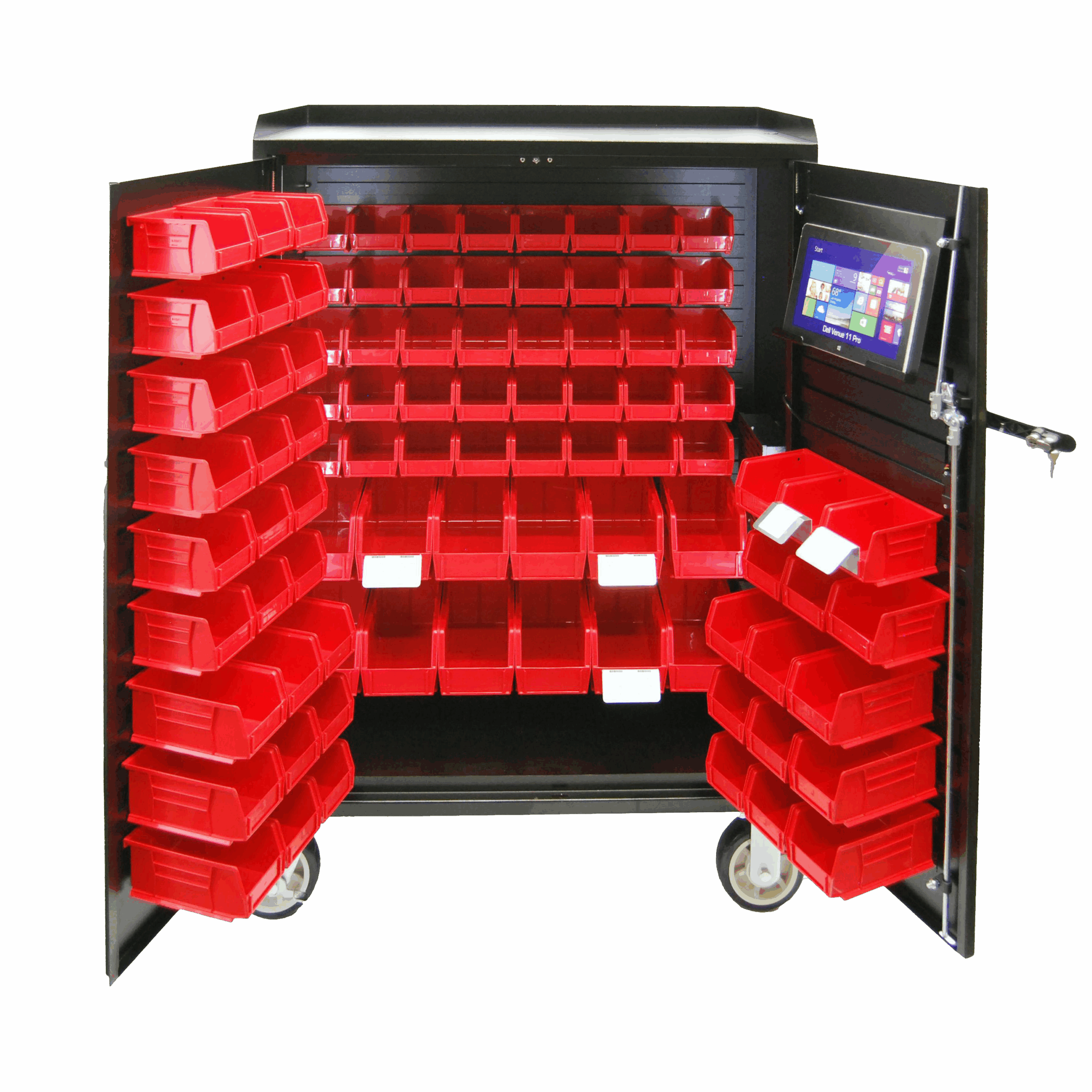 Mobile inventory cabinet with secure, organized storage. Compatible with USB, power, and Bluetooth accessory modules.