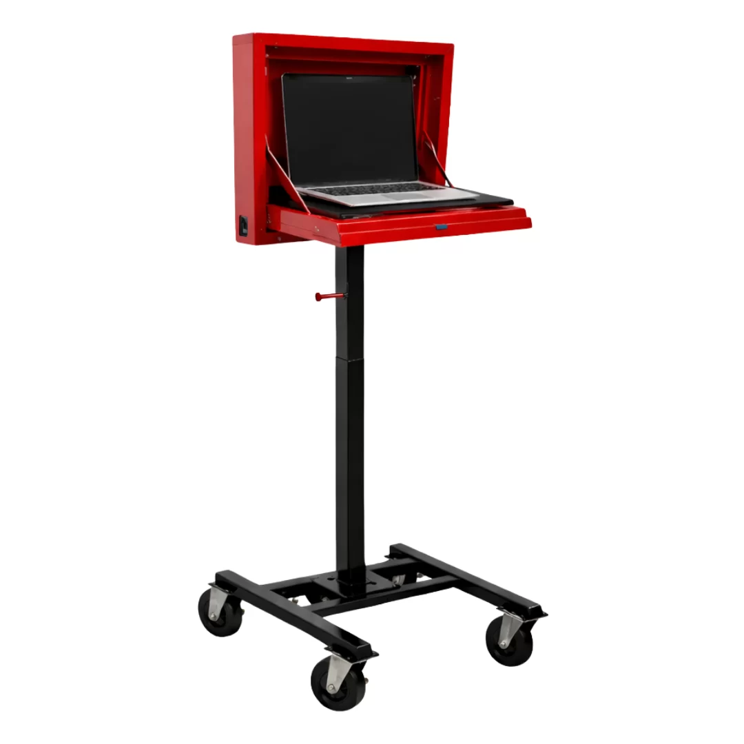 The L1A-AS by Goliath Carts combines the secure, keyless L1 Laptop Locker with a durable mobile stand for enhanced shop flexibility. Ideal for storing laptops, tablets, and other devices, this setup allows technicians to keep tools secure while maintaining full mobility across the shop floor. Built from powder-coated steel with locking casters, it’s a compact solution for dealerships, service departments, and fleet operations.