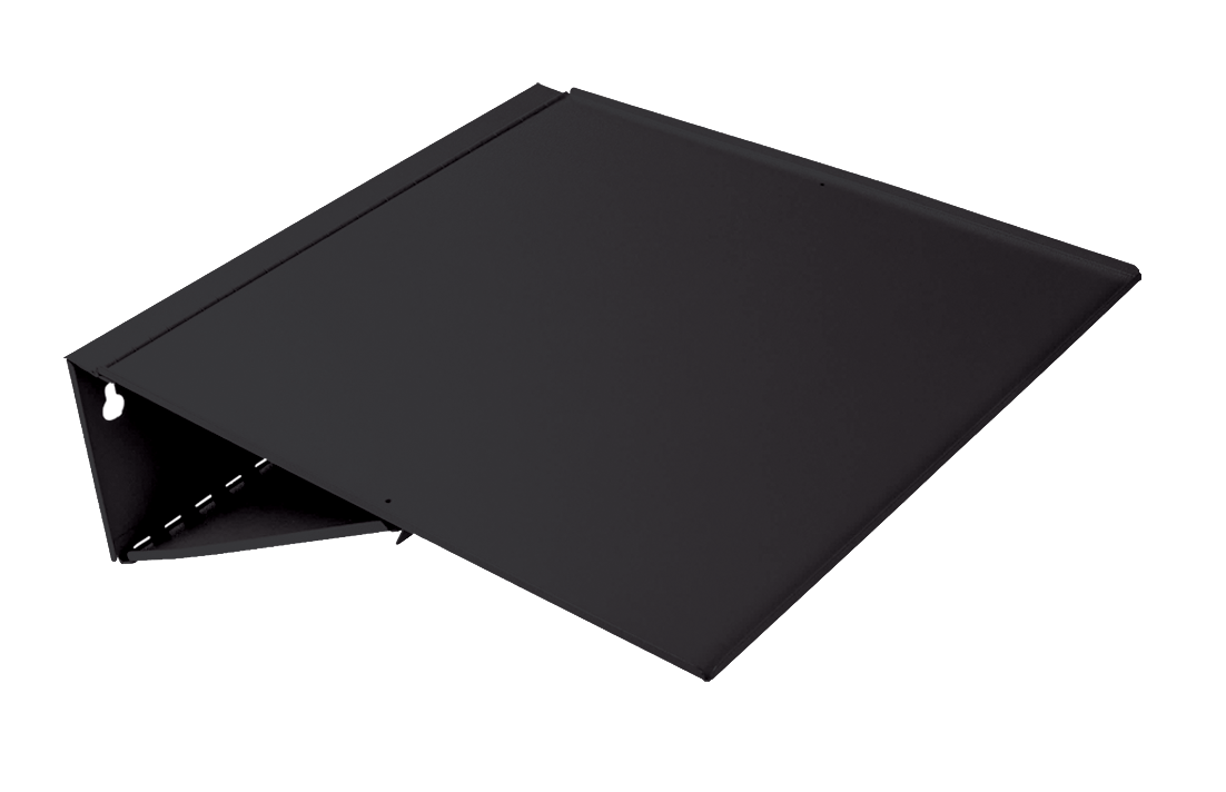 Durable side shelf for TGO-DC2 carts. Adds workspace for tools, documents, and devices. Powder-coated black finish.