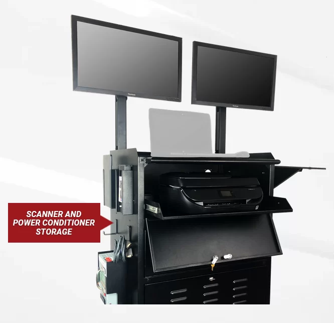 Includes our “ADAS” cart with all necessary wiring, adjustable cubbies, as well as all necessary electronics to make it perform to its full potential. Electronics provided include a Touch-Screen Tablet, Dual Touch Monitors, Inkjet Printer, Universal Docking Station, Wireless Mouse, and Accessory Kit.