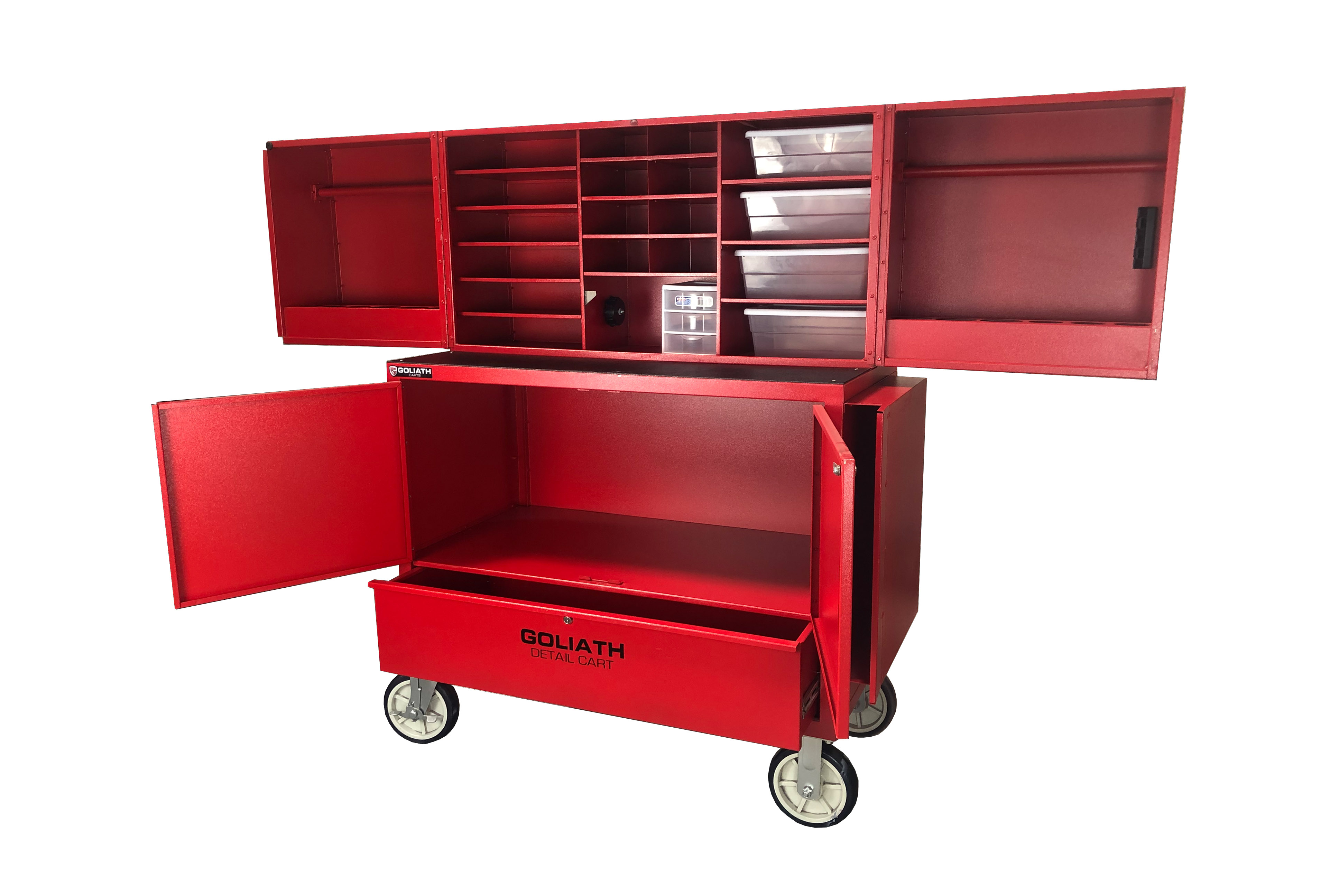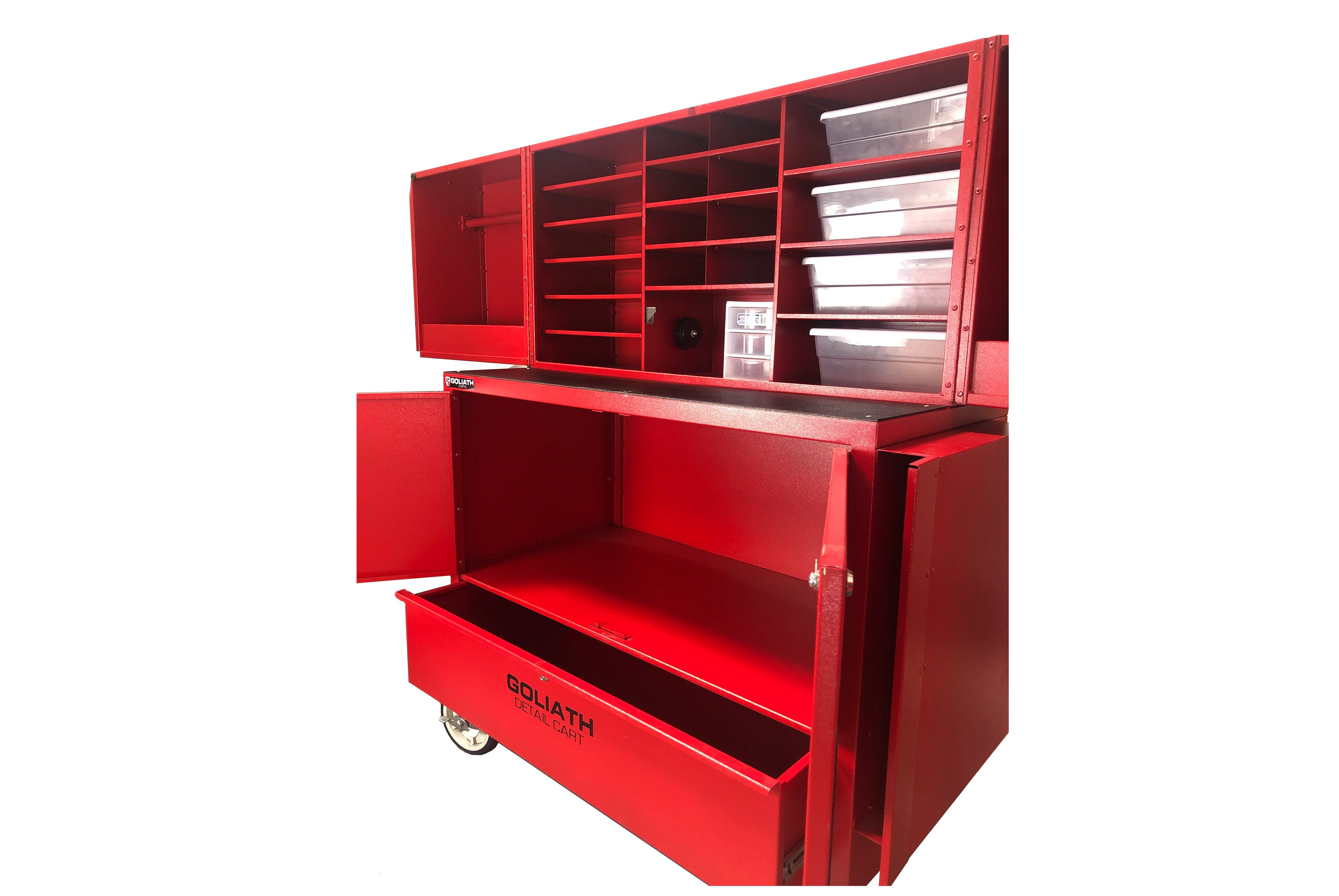 The D1 Mobile Detailer Cart is a classic in the Goliath Carts Line of Smart Solutions. Like our other carts, the D1 utilizes a “closed system” that provides security and control of all the tools and materials needed by the detail and car wash departments. The design further helps minimize contaminants on the paper rolls and detailing supplies while giving the shop mobility and control of valuable resources.